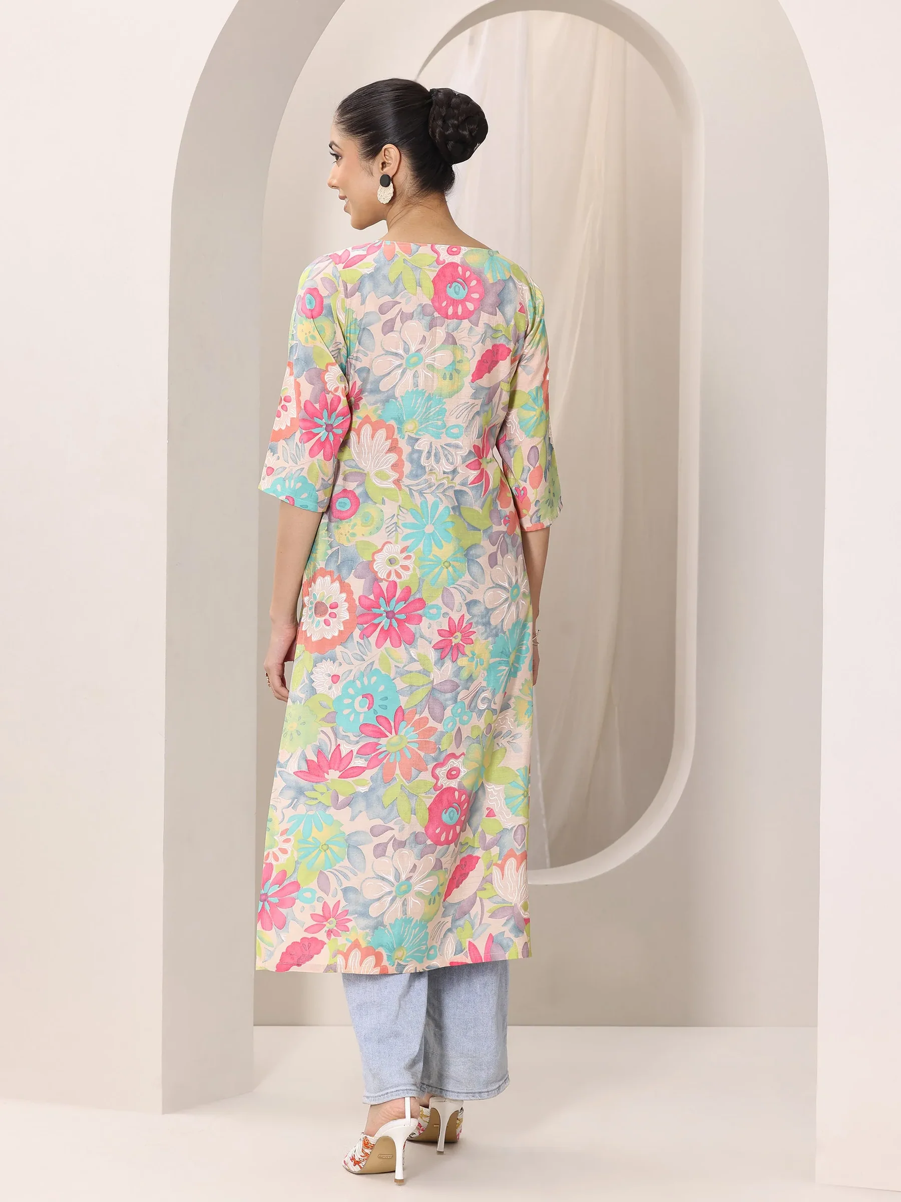 Multi Printed Silk Blend Straight Kurta