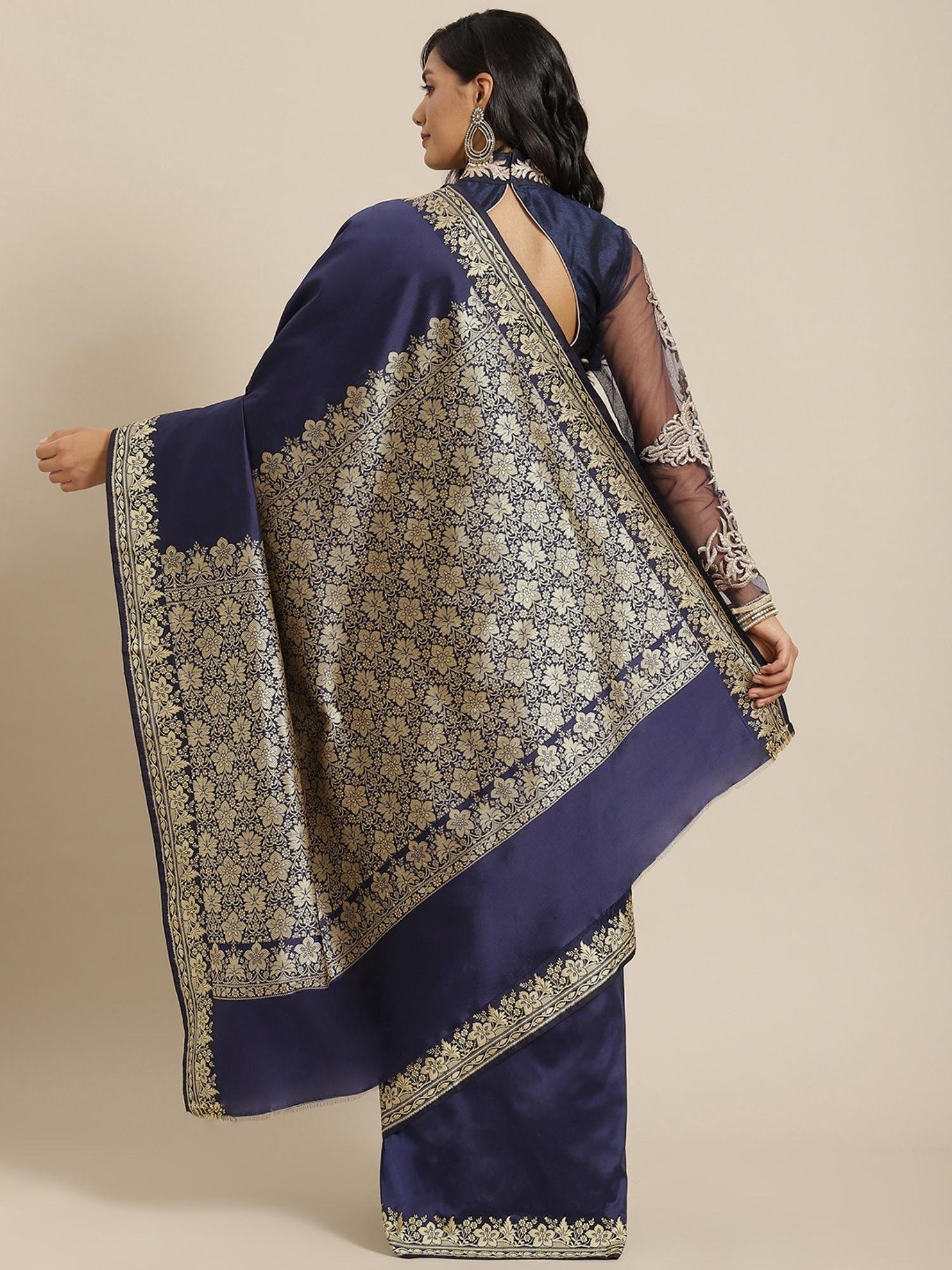 Navy Blue Handloom Saree with Unstitched Blouse