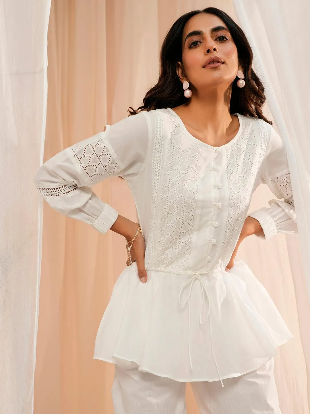 White Cotton A-Line Kurti